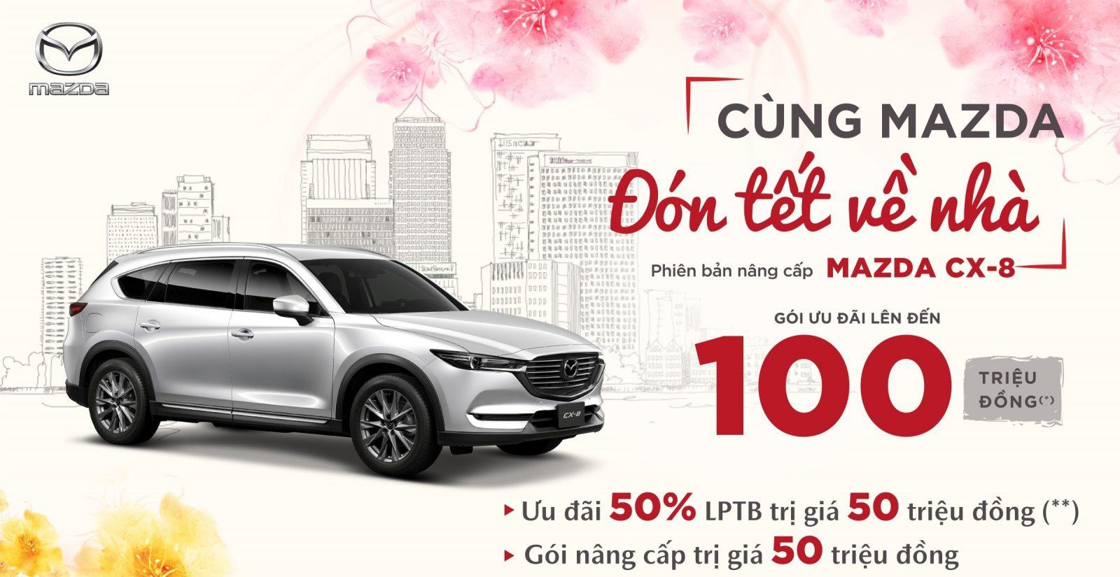 Cụ thể, SUV 7 chỗ Mazda CX-8 đang được hưởng mức ưu đãi cao nhất đến 100 triệu đồng dành cho phiên bản Deluxe. Theo đó, khách hàng mua Mazda CX-8 Deluxe trong tháng 01/2020 sẽ được ưu đãi 50% lệ phí trước bạ (áp dụng theo mức 10%) trị giá 50 triệu đồng và quà tặng gói nâng cấp trị giá 50 triệu đồng (liên hệ hotline để nhận thông tin chi tiết).