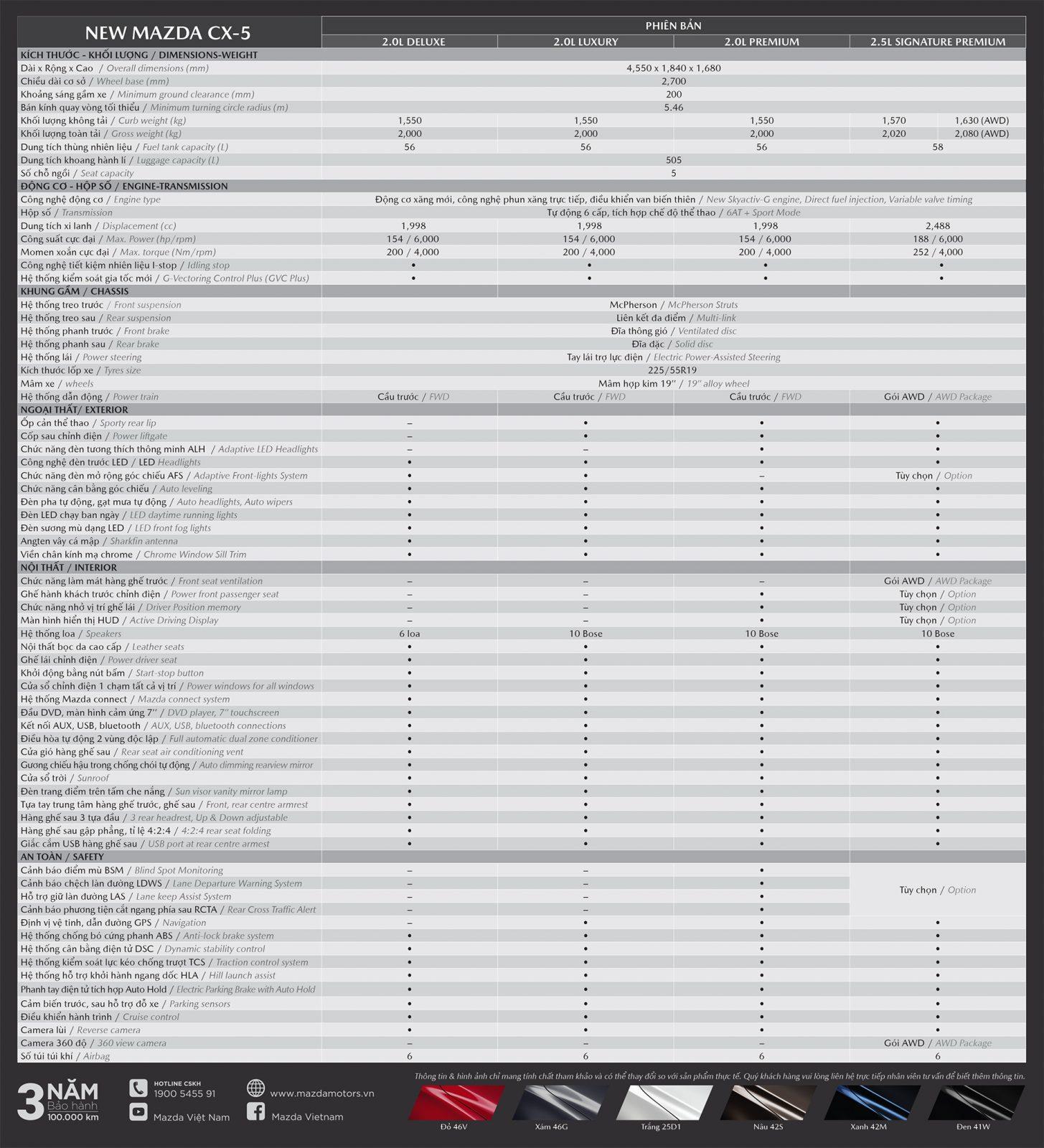 MAZDA CX5 PREMIUM 2023: THÔNG SỐ KĨ THUẬT & GIÁ BÁN